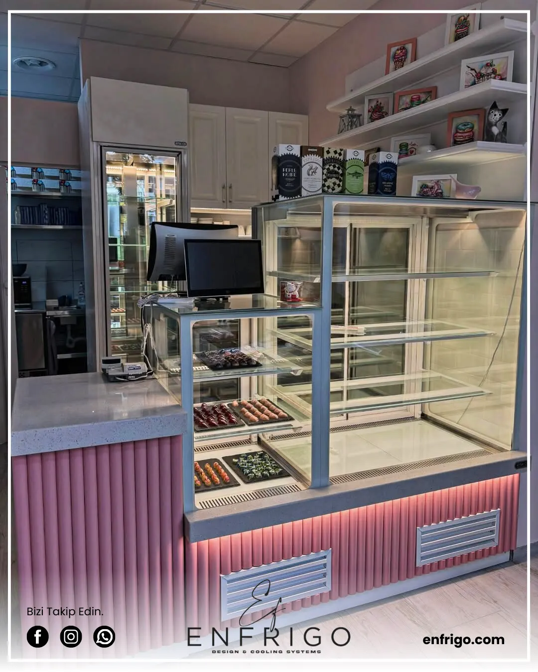 Pasta ve soğuk teşhir dolabı, tatlılar, pastalar ve soğuk gıda ürünlerini uzun süre taze tutarak ideal sıcaklıkta muhafaza eder. Paslanmaz çelik gövdesi, hijyenik ve dayanıklı bir kullanım sunarken, güçlü soğutma sistemi tatlıların taze ve lezzetli kalmasını sağlar. Şık cam paneli sayesinde içerideki ürünler rahatlıkla sergilenebilir, böylece görsel çekiciliği artırır. Pastaneler, restoranlar, kafeler ve oteller için mükemmel bir vitrin çözümü sunar.