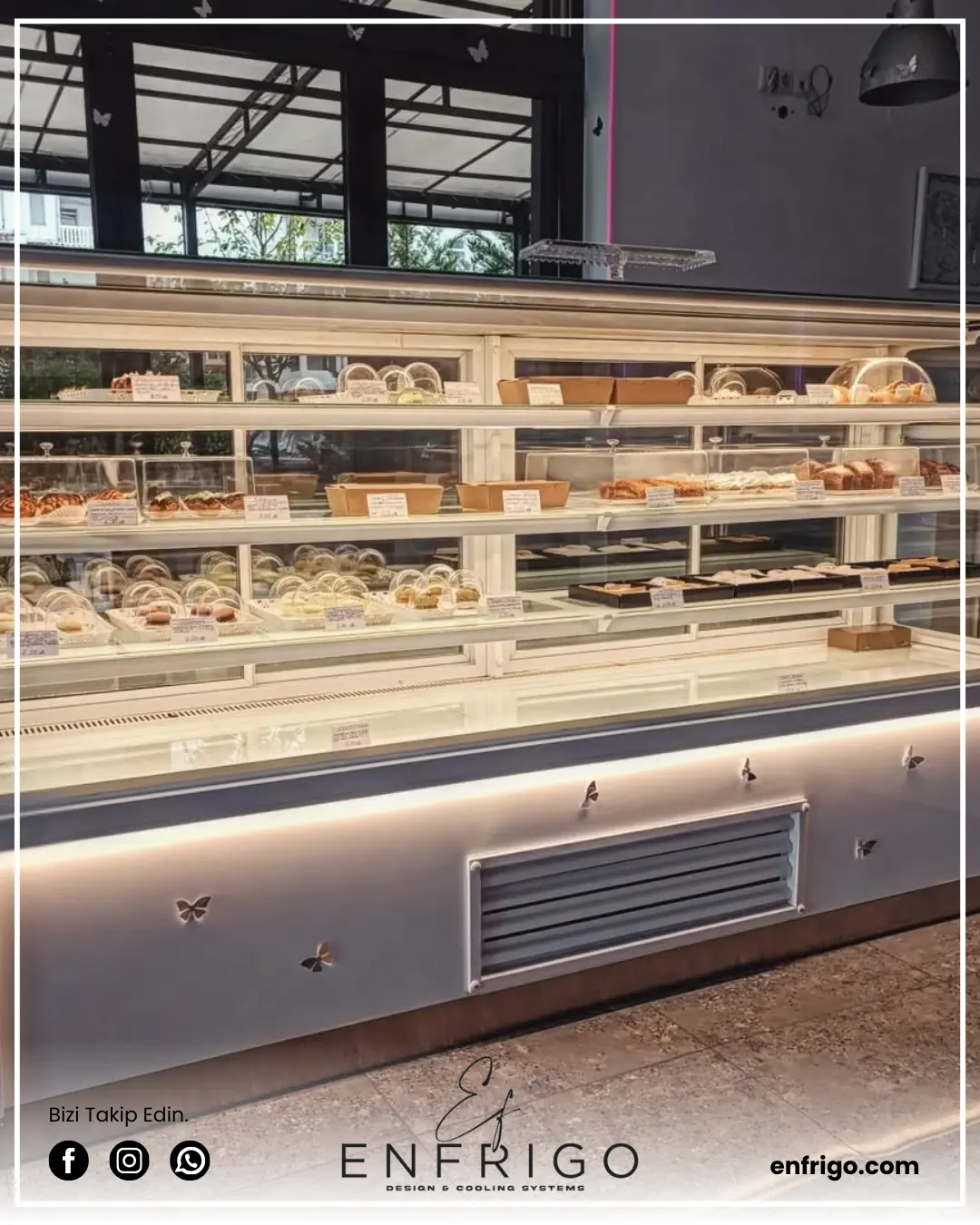 Pasta ve tatlı sergileme dolabı, pastalar ve tatlılar için mükemmel bir sergileme alanı sunar. Soğutma sistemi sayesinde ürünlerin tazeliği uzun süre korunur. Paslanmaz çelik gövdesi dayanıklı ve hijyeniktir, temizliği kolaydır. Geniş cam paneli, içerideki tatlıların net bir şekilde görünmesini sağlayarak görsel çekiciliği artırır. Bu dolap, pastaneler, restoranlar, kafeler ve otellerde tatlıların sergilenmesi ve satışında etkili bir çözüm sunar.