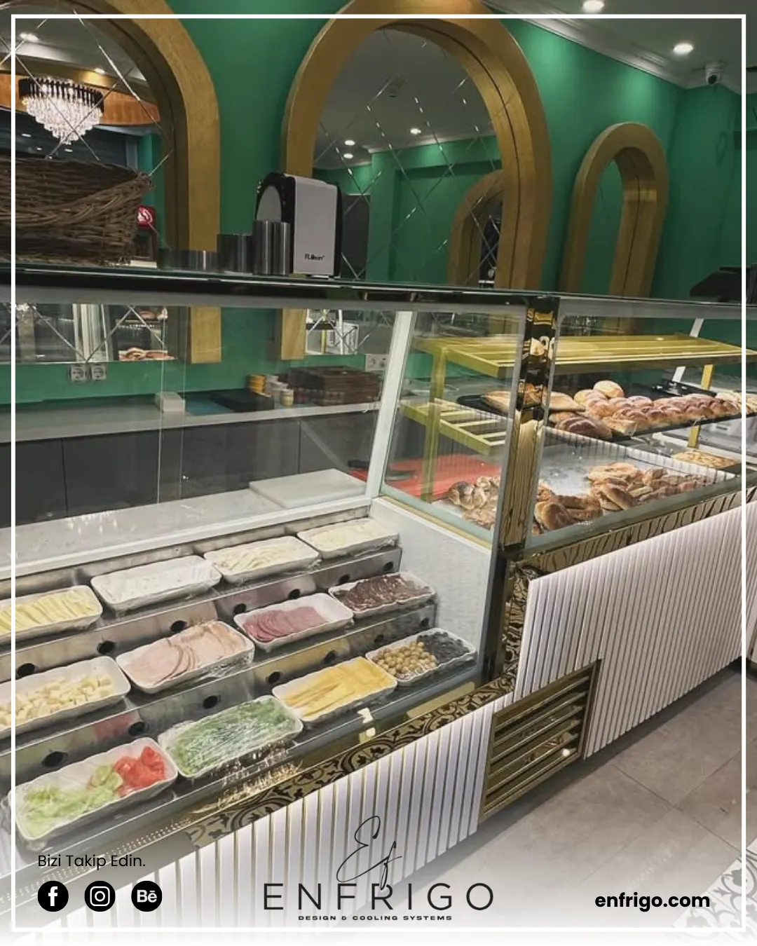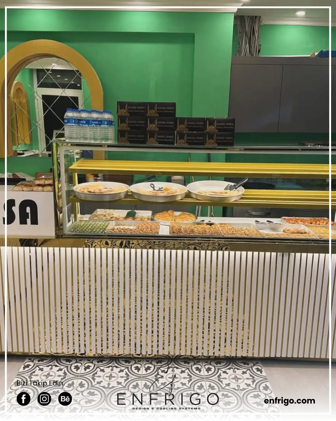 Pastane ve unlu mamül vitrini, pastane ve fırınlarda taze ekmekler, börekler, poğaçalar ve diğer unlu mamüllerin sergilenmesi için özel olarak tasarlanmış profesyonel bir üründür. Şeffaf cam panelleri sayesinde içindeki ürünler net bir şekilde görünür, bu da müşterilere görsel bir güven sağlar. Paslanmaz çelik gövdesi ile dayanıklı ve hijyeniktir. Soğutma sistemi, tatlılar veya daha hassas unlu mamüllerin taze kalmasını sağlar. Ergonomik tasarımı, hızlı ve düzenli servis yapılmasına olanak tanır.