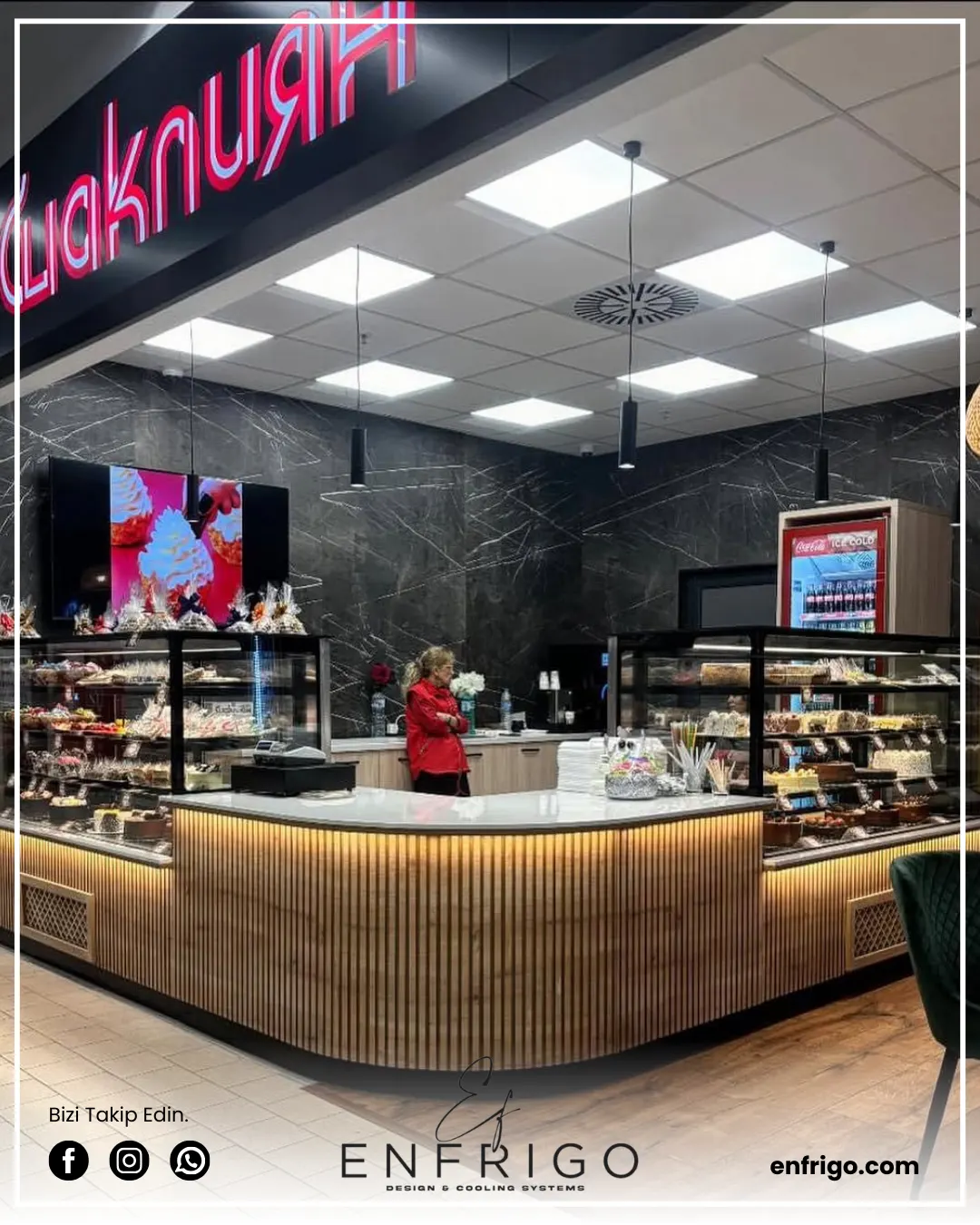 Uygun soğutmalı tatlı teşhir ünitesi, pastane, kafe ve restoranlarda tatlıların taze ve hijyenik bir şekilde sergilenmesi için ideal bir çözümdür. Güçlü soğutma sistemi, tatlıların uzun süre taze kalmasını sağlar. Paslanmaz çelikten üretilen yapısı, dayanıklı ve kolay temizlenebilirken, geniş cam paneli sayesinde tatlılar net bir şekilde sergilenir. Enerji verimli özellikleri ile düşük enerji tüketimi sağlarken, estetik tasarımıyla da mekânınıza şıklık katacaktır.